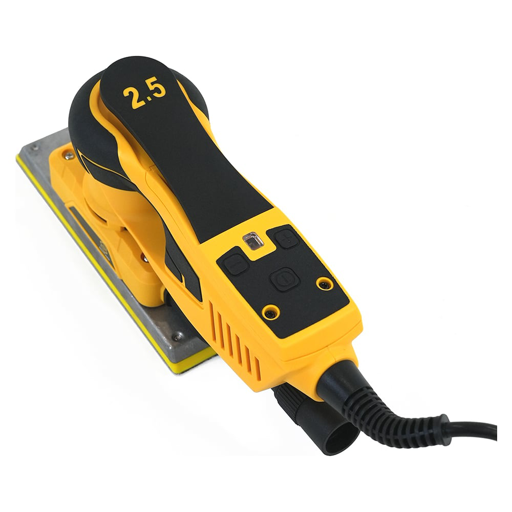 SCH-01-197-70-2.5 плоскошлифовальная машинка ручная 220V/50Hz, эксцентрик 2,5 мм. Шлифовальная машинка предназначена для шлифовки древесины, пластика, соединения, краски/лака, грунтовок и аналогичных материалов. Дополнительные характеристики: Мощность: 350 Вт Напряжение: 220-240 В переменного тока Скорость: 4000 - 10 000 об./мин. Номинальный эксцентрик: 2,5 мм. Размер подушки: 70 x 197 мм. Степень защиты: I
