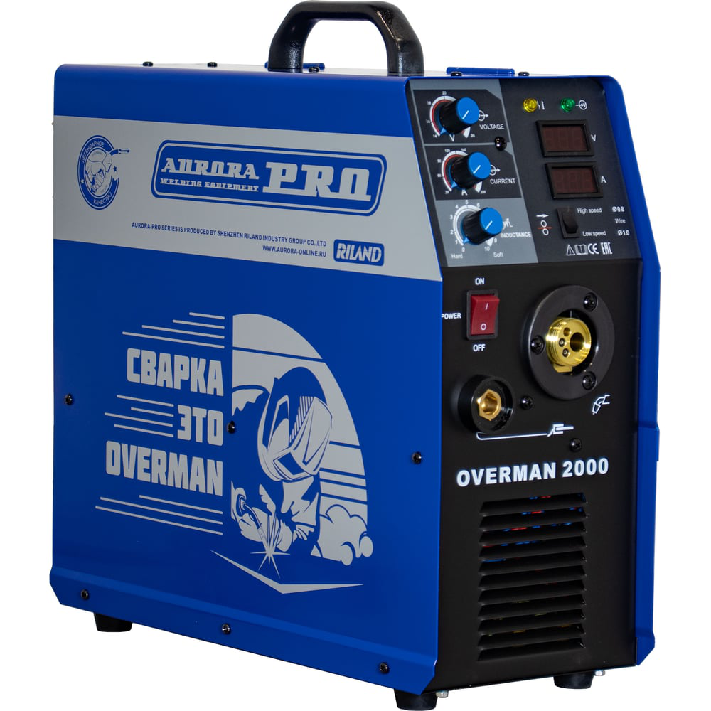 Инверторный сварочный полуавтомат Aurora PRO OVERMAN 2000 Mosfet 39526 - современный агрегат для сварки MIG/MAG. Оборудование позволяет выполнять работы как в профессиональной (строительство, кораблестроение), так и в бытовой (монтаж металлоконструкций, авторемонт) сфере деятельности. Аппарат имеет цифровой дисплей для настройки и отображения параметров сварки. Оснащается встроенным механизмом подачи проволоки с регулировкой скорости подачи (от 2 до 15 м/мин). Агрегат отлично справляется с таким "капризным" материалом, как алюминий. Модель имеет регуляторы сварочного тока, сварочного напряжения и индуктивности, которые позволяют задавать оптимальные значения для выполнения работ высокого качества. Опция - тележка Avrora PRO для транспортировки инвертора.Применение:авторемонтстроительствонебольшое производствомонтаж металлоконструкций