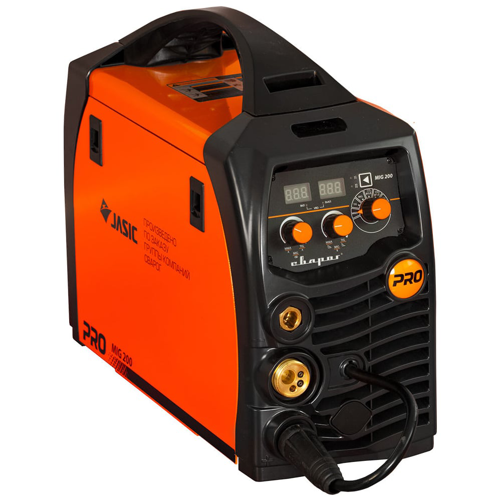 Сварочный инвертор Сварог PRO MIG 200 N229 00000091097 - это универсальное однофазное оборудование, которое пригодится на любой строительной площадке или на производстве различных металлических конструкций. С помощью данного агрегата можно выполнить высококачественное сварное соединение черных и цветных металлов, в том числе и алюминия. Методы, применяемые для сварки: ручная дуговая, за счет наплавки штучного электрода (ММА), аргонодуговая, с использованием постоянного тока (TIG), механизированная в среде защитного газа и без него (MIG/MAG, FCAW).