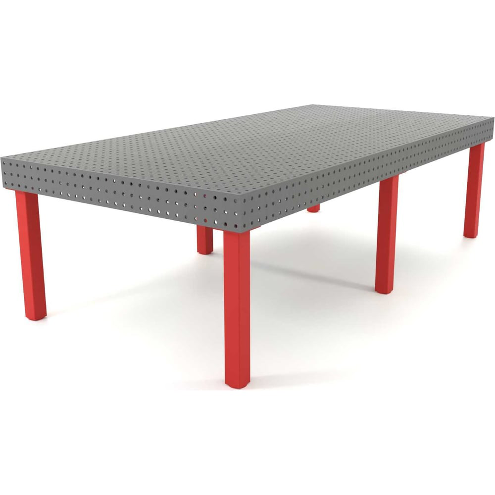 Поставляется в собранном виде с комплектом опор, высота опоры: 850-910 мм. Столы могут использоваться для ручной и роботизированной сварки. Используется сталь 09Г2С – стол получается более прочный, жесткий, долговечный, устойчивый к коррозии и нагрузкам. Механические свойства стали 09Г2С на 30% лучше, чем стали СТ3. Шаг координатной сетки: 50 мм дает оптимальную точность, возможность точно фиксировать детали на столе и возможность варить широкий спектр изделий от мелких до крупных деталей. Не нужно дополнительно измерять диагональ – увеличение скорости работы сварщика. Плоскостность 0,5-1 мм на погонный метр дает оптимальную точность и стабильную повторяемость изделий, минимальный процент брака. 4-14 ребер жесткости (в зависимости от размера стола) дают улучшенную жесткость стола, стол не ведет, снижение деформации поверхности, стол выдерживает большие механические и термические нагрузки. Точность регулировок опор стола – 1 мм, высота фиксируется регулировочным винтом. Столешницы обработаны антипригарной жидкостью. Изделия не приливают при сварке, увеличивается скорость работы сварщика, стол более защищен от прилипания окалины и расплавленного металла. Максимально разрешенная статичная нагрузка до 2000 кг. Добавочные плиты и соединительные блоки дают возможность стыковать несколько сварочных столов в систему для сборки крупногабаритных и массивных изделий. Лазерная обработка отверстий для оснастки + дополнительная механическая обработка отверстий для устранения заусенцев, окалины, облоя.