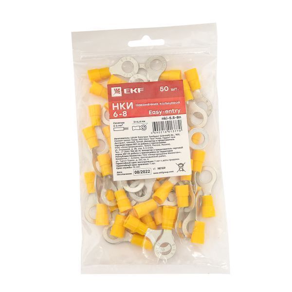 Наконечники кольцевые изолированные НКИ EKF PROxima и вилочные изолированные НВИ EKF PROxima предназначены для оконцевания многопроволочных (гибких) медных проводов и используются при монтаже электрических узлов, где предусмотрено соответствующее контактное соединение на основе винтовой фиксации. Кольцевые наконечники используются для стационарных подключений к электрооборудованию.При необходимости оперативных перекроссировок предпочтительно использование вилочных наконечников, поскольку в этом случае не требуется полный демонтаж крепежного соединения, достаточно лишь ослабить винтовую фиксацию.