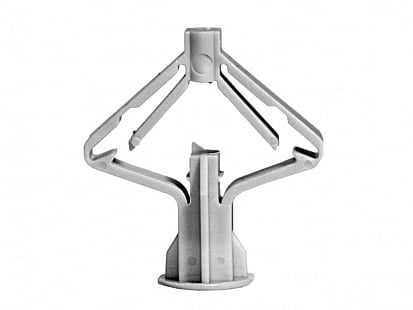Дюбель для листовых конструкций. Применяется в гипсокартонных перегородках, перегородках из ГВЛ, стекломагниевого листа и т.д. Фиксируется в отверстии за счет большого распора с внутренней сторны стены.
