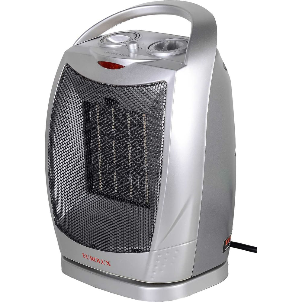 Тепловентилятор Eurolux ТВК-EU-2 мощностью 1800 Вт — это компактный портативный прибор, обеспечивающий обогрев помещений до 22 м². Керамический нагревательный элемент отличается быстрым набором температуры. Он пропускает сквозь себя потоки воздуха, которые равномерно циркулируют по помещению с помощью вентилятора. Встроенный термостат позволяет регулировать интенсивность работы. Функция поворота на 90° дает возможность управлять движением воздуха и быстро обогревать те участки, где это особенно необходимо.Механические поворотные регуляторы позволяют выбрать режим нагрева или вентиляции. Безопасность эксплуатации гарантирована наличием надежной системы защиты от перегрева. Она автоматически отключает устройство при чрезмерном повышении температуры воздуха. В летнее время отопительный прибор может использоваться как вентилятор.Компактные габариты и вес 1,86 кг обеспечивают мобильность тепловентилятора Eurolux ТВК-EU-2. Он предназначен для бытового использования и способен эффективно обогревать жилые и нежилые помещения небольшой площади. Световой индикатор позволяет контролировать рабочее состояние прибора. Удобная рукоятка обеспечивает удобство переноски. Прочный пластиковый корпус прост в уходе. Стильный серебристый цвет удачно гармонирует с интерьером.