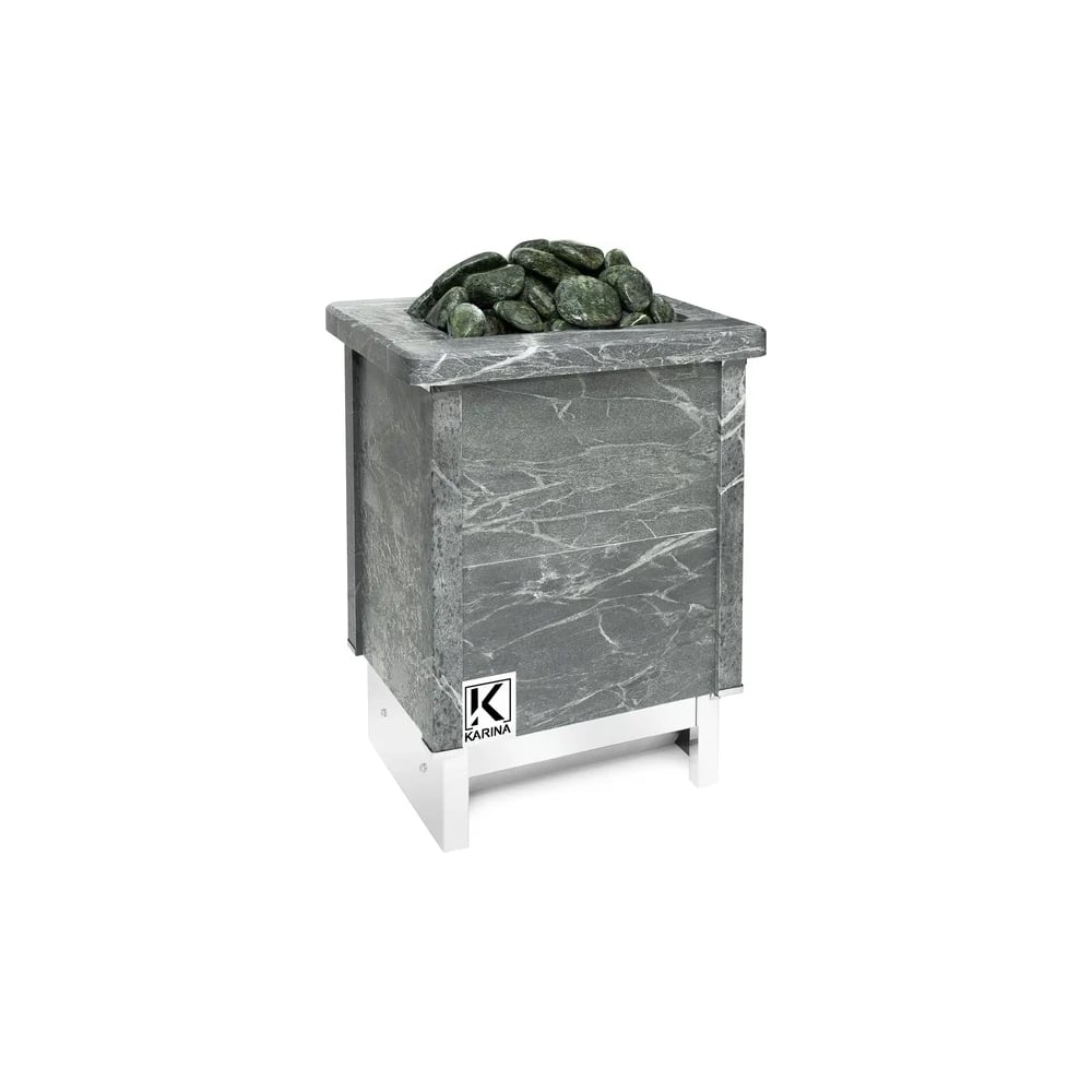 Электрическая печь KARINA Quadro 7,5 Талькохлорит – это электрокаменка, облицованная натуральным камнем со всех сторон, и обладающая мощностью оптимальной для семейных саун и средних бань объемом до 9 м3.Талькохлорит эстетично смотрится в любом интерьере и обладает множеством лечебных свойств. При нагреве он выделяет с паром витамин D полезный для костной системы человека. Талькохлорит способствует улучшению обмена веществ и общему укреплению иммунитета. Кроме того, минерал улучшает теплообмен в парильном помещении.Емкость отсека для камней составляет 40 кг.Для работы электропечи понадобится сеть с напряжением 220/380 В.Нагревательным элементом в печке является ТЭН из высококачественной нержавеющей стали, который имеет повышенную электробезопасность и обладает большой тепловой инерцией. Диаметр нагревательного элемента составляет 13 мм. Подобные нагреватели нормально переносят попадание влаги. Это позволяет устанавливать электрическую каменку как в бани с сухим паром, так и в парные с паром повышенной влажности.На камни, находящиеся в отсеке, можно лить воду, благодаря особой конструкции печи и нагревательному элементу.У представленной модели предусмотрен напольный монтаж.Печь не укомплектована выносным пультом управления, его необходимо приобрести отдельно.