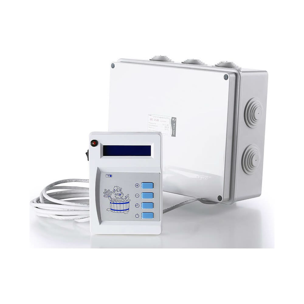 Пульт управления для электрокаменки VVD ПУ-01 МП 15-24/380 электронный блок ПУ, силовой блок ПУ 260x210x100мм 7646 предназначен для безопасного подключения электрических печей мощностями от 15 до 24 кВт, напряжением 380В и управления их работой в автоматическом режиме. Электронный терморегулятор позволяет поддерживать заданную температуру, снабжен информационным табло и включать встроенный электрический генератор перегретого пара. Внимание! Внешний вид товара может отличатся от фото.