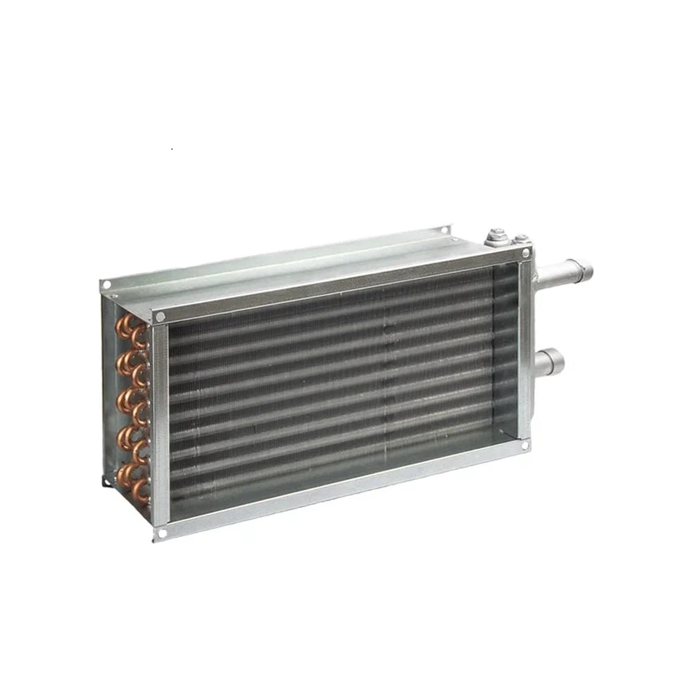 Водяной калорифер оснащен эффективным медно-алюминиевым пластинчатым теплообменником. Теплообменник изготовлен из алюминиевых пластин и проходящих через них медных трубок диаметром 9,52 мм. Шахматное расположение трубок. В приборе воздух нагревается за счет прохождения через нагретый контур пластин или трубок, в которых протекает нагретая до определенной температуры вода. Максимальная температура теплоносителя на входе в теплоноситель 150°С.