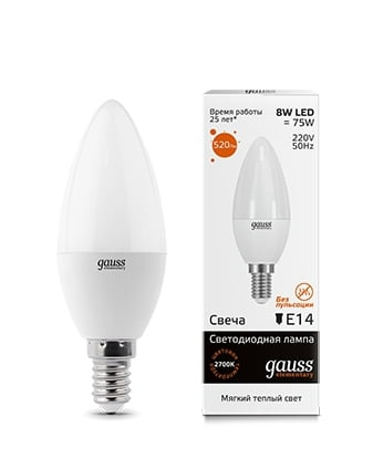 Серия Gauss Еlementary является бюджетной линейкой качественных светодиодных ламп известного светотехнического бренда Gauss. Прекрасные эксплуатационные свойства в совокупности с невысокой ценой делают эти лампы крайне востребованными у потребителей.