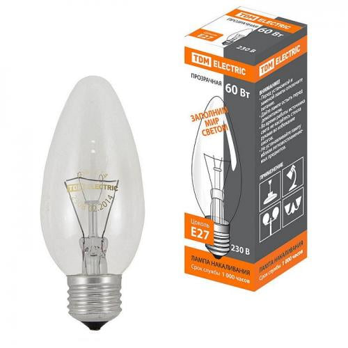 В нашем магазине «Главэлектрика» в Нижнем Новгороде, вы можете приобрести товар: «TDM 60 Вт-230 В-Е27 прозрачная свеча» с доставкой по г. Нижний Новгород.