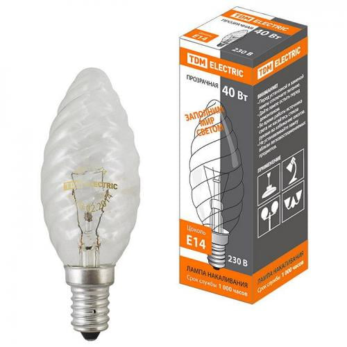 Лампа накаливания "Витая свеча" прозрачная 40 Вт-230 В-Е14 TDM