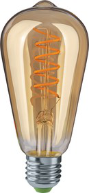 Филаментная светодиодная лампа Vintage Navigator NLL-F-ST64-4-230-2.5К-E27-SPIRAL, 61628 - это стильный и энергоэффективный источник освещения для вашего интерьера. Сочетая в себе классический дизайн лампы с современной технологией светодиодов, она создаст уютную атмосферу в любом помещении.Эта лампа имеет форму ST64, что придает ей элегантный винтажный вид. Светодиодные нити внутри лампы имитируют классический нитьевой накал, при этом потребляя гораздо меньше энергии и имея более длительный срок службы. Цветовая температура 2500K создает теплый и приятный свет, идеальный для создания уюта и комфорта.