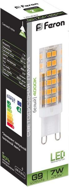 Лампа светодиодная LED капсула Feron LB-433 G9 7Вт 4000K, 25767 – это надежное и эффективное решение для освещения вашего помещения. С его помощью вы сможете создать комфортную и функциональную атмосферу в любом интерьере, при этом снизив энергозатраты и продлев срок службы освещения.