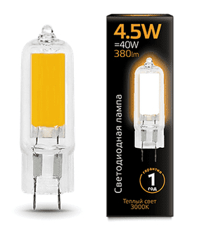 Лампа светодиодная (LED) капсульная d16мм G4 380° 4.5Вт 220-240В прозрачная тепло-белая 3000К Gauss Тип напряженияAC/DC (перемен./постоян.)