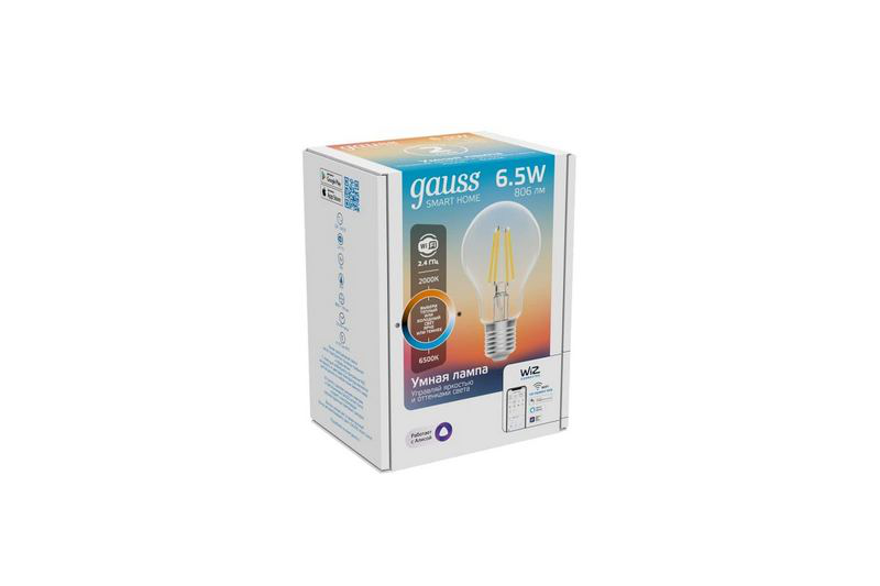 В нашем магазине «Главэлектрика» в Нижнем Новгороде, вы можете приобрести товар: «Лампа светодиодная LED 6,5Вт E27 2000-6500К A60 Filament Smart Home DIM+CCT Gauss» с доставкой по г. Нижний Новгород.