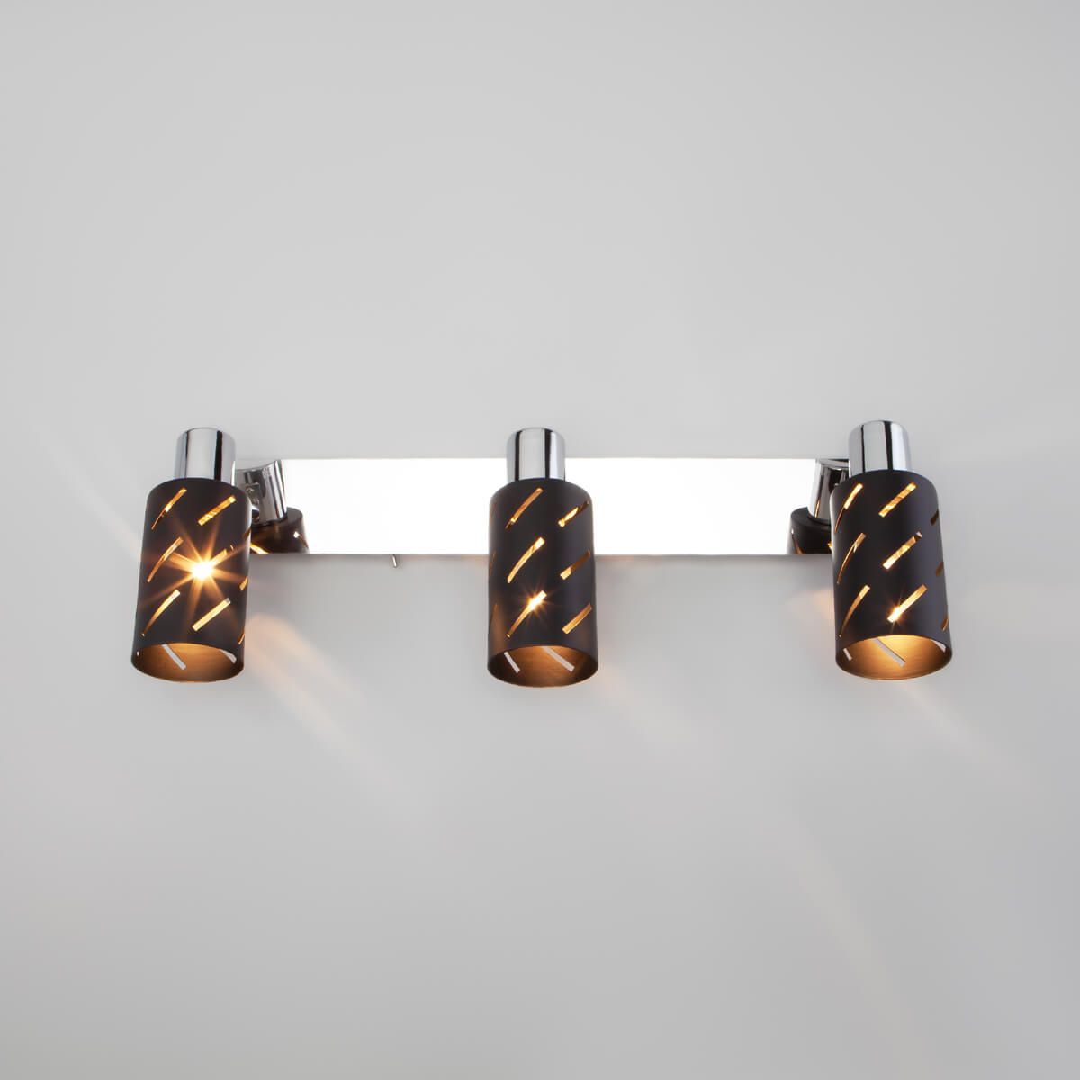 Расширенная гарантия на товар составляет 3 года. поставщик рекомендует использовать лампы накаливания с цоколем E14 для освещения площади 6 м2. Спот Eurosvet Fente 20090/3 черный/хром в современном стиле используется в интерьере Для гостиной с установкой На стену.