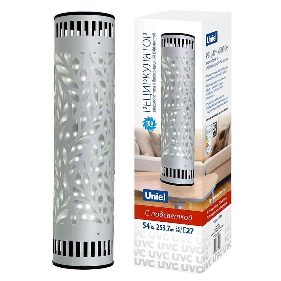 Расширенная гарантия на товар составляет 2 года. поставщик рекомендует использовать лампы накаливания с цоколем E27 для освещения площади 3 м2. Ультрафиолетовый бактерицидный рециркулятор Uniel UDG-V100A UVCB/4000K D02 Steel UL-00007825 в современном стиле используется в интерьере Для офиса с установкой На стол.