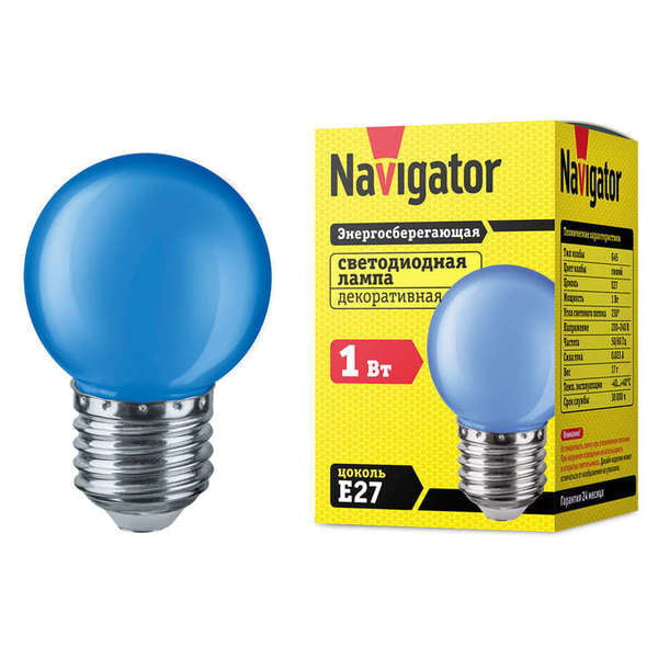 В нашем магазине «Главэлектрика» в Нижнем Новгороде, вы можете приобрести товар: «.Navigator NLL-G45-1-230-B-E27 син. 71 829 лампа НОВИНКА» с доставкой по г. Нижний Новгород.