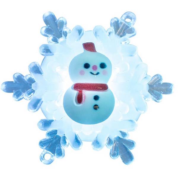 Фигура светодиодная Снеговик на снежинке RGB на присоске 5.5х5.5см Neon-Night 501-038 – волшебное дополнение к вашему новогоднему интерьеру! Эта стильная и яркая светодиодная фигурка создаст неповторимую атмосферу праздника и порадует ваши глаза. Фигурка изготовлена из прочного материала, а благодаря светодиодным лампочкам RGB, она играет всеми цветами радуги, перенося нас в волшебный мир зимнего волшебства.