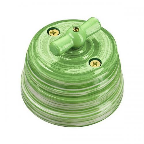 Выключатель 2-х позиционный Greenel GE70404-45, цвет Art-verde — это функциональный и надежный выключатель, выполненный из керамики. он был спроектирован и произведен отечественной компанией [manufacturer_name], которая довольно давно работает на рынке ретро электрики и хорошо себя зарекомендовала. Greenel GE70404-45 соответствует всем требованиям пожарной и электрической безопасности, потому ее можно без лишних сомнений монтировать как в нежилых, так и в жилых помещениях (в том числе в деревянных и бревенчатых домах). Производятся ретро выключатели [manufacturer_name] исключительно на современном оборудовании. Ретро выключатели наружного монтажа производства выше упомянутой фирмы выполняются в круглой и квадратной форме, потому как модель GE70404-45, так и другие выключатели Гринел идеально вписываются в различные интерьерные стили.