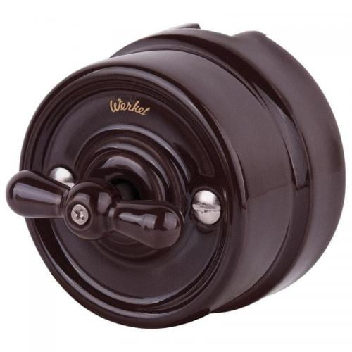Ретро выключатель Werkel a036802 коричневый представляет отличное решение для современных интерьеров. Данная модель выключателя особенно популярна в интерьерах в стилях лофт, стимпанк и минимализм. Выключатель Werkel отвечает всем необходимым стандартам и ГОСТам, имеет высочайшее качество, подтверждённое сертификатами соответствия.Человек с чувством вкуса при выборе электрики не пройдёт без интереса мимо ретро выключателей Werkel. Винтажный коричневый выключатель отлично сочетается в комплекта