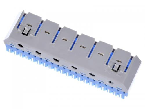 Клемный блок предназначен для коммутации жил проводов и кабелей, а также для соединения нулевого провода и провода заземления. Клеммные блоки выполнены в интуитивно понятных цветах: нейтраль (N) – синий, земля (PE) – зелёный. Клеммы могут устанавливаться как сверху шкафов – так и снизу.