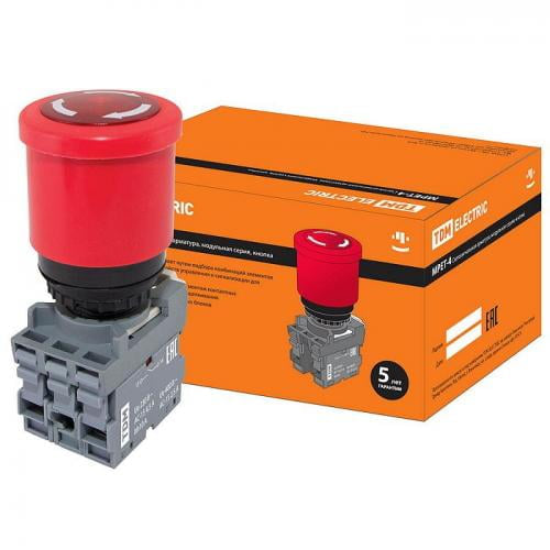 В нашем магазине «Главэлектрика» в Нижнем Новгороде, вы можете приобрести товар: «Кнопка грибовидная, возврат поворотом MPET4-10R в сборе d40мм 1з+1р красная TDM» с доставкой по г. Нижний Новгород.