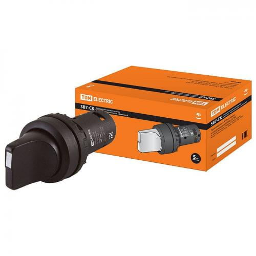 Переключатель на 2 положения с фиксацией SB7-CD25 короткая ручка d22мм 1з+1р черный TDMSQ0746-0071