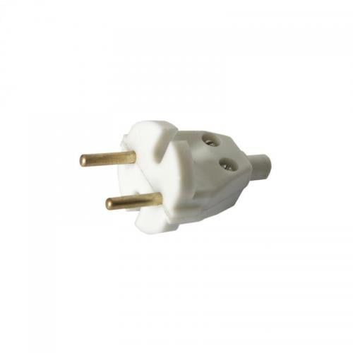 Сетевая вилка угловая. Количество жил и рекомендованное сечение провода: 2×2,5 мм².Материал корпуса: пластик.