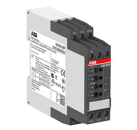 Однофазное реле контроля напряжения CM-ESS.2S (диапазоны измерения 3- 30В, 6-60В, 30-300В, 60-600 AC/DC) питание 24-240В AC/DC, 2ПК, винтовые клеммы 1SVR730830R0400 ABB