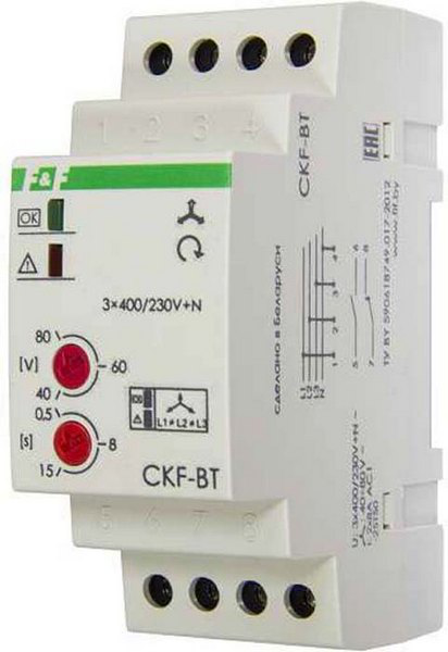 Реле контроля фаз CKF-BT предназначено для защиты электродвигателей и электроустановок, подключенных к трёхфазной сети, в случаях:1. Отсутствия хотя бы одной из фаз.