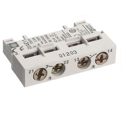 Контакт GVAE11 дополнительный мгновенного действия 1«з»+1«р» («Schneider Electric»)Предназначен для коммутации электрических цепей сигнализации состояния главных полюсов автомата для защиты двигателя (включено-выключено). Устанавливается на автоматы для защиты двигателя (см. поз. по п/л А8225—А8247) на переднюю крышку.