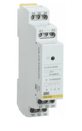 Предназначено для гальванической развязки и передачи команд управления исполнительным элементам, между силовыми цепями и цепями управления. Три контактных группы, с коммутационной возможностью до 16А каждая. Номинальное напряжение катушки реле 24В AC/DC.