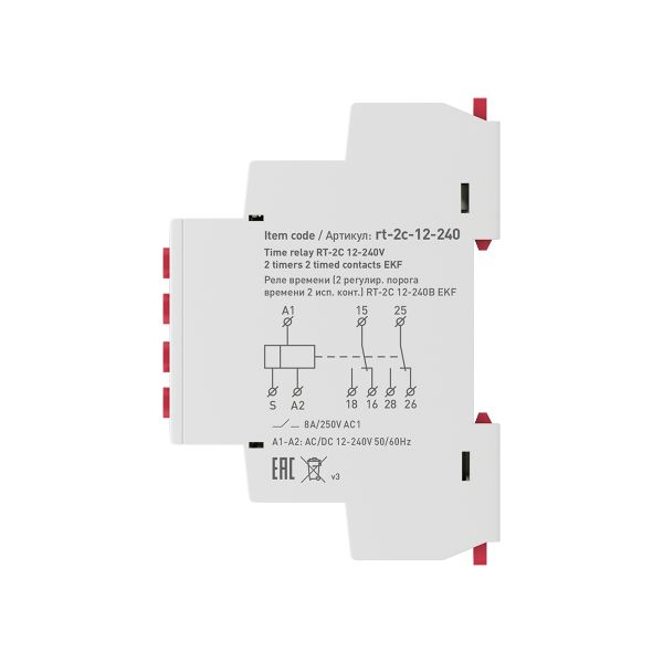Реле времени RT-2C EKF PROxima является электронным коммутационным аппаратом с регулируемой установкой времени. Реле предназначено для создания циклической работы схемы с задержкой на включение. Переключение диапазонов времени производится с помощью поворотных регуляторов, расположенных на лицевой поверхности реле. Реле применяется в системах промышленной и бытовой автоматики: в вентиляционных, отопительных, осветительных. Категория применения – АС-15 (управление электромагнитами мощностью свыше 72 Вт). Многофункциональное реле времени RT-10 EKF PROxima является электронным коммутационным аппаратом с регулируемыми режимами работы и регулируемой установкой времени. Реле предназначено для включения или отключения нагрузки по заданным временным величинам и режимам работы. Переключение диапазонов времени и режимов работы производится с помощью поворотных регуляторов расположенных на лицевой поверхности реле. Реле применяется в системах промышленной и бытовой автоматики: в вентиляционных, отопительных, осветительных системах. Категория применения – АС-15 (управление электромагнитами мощностью свыше 72 Вт). Реле времени RT-SBA EKF PROxima является электронным коммутационным аппаратом с регулируемой установкой времени. Реле предназначено для включения нагрузки с задержкой времени включения. Переключение диапазона времени производится с помощью поворотного регулятора, расположенного на лицевой поверхности реле. Реле применяется в системах промышленной и бытовой автоматики: в вентиляционных, отопительных, осветительных системах. Категория применения – АС-15 (управление электромагнитами мощностью свыше 72 Вт).
