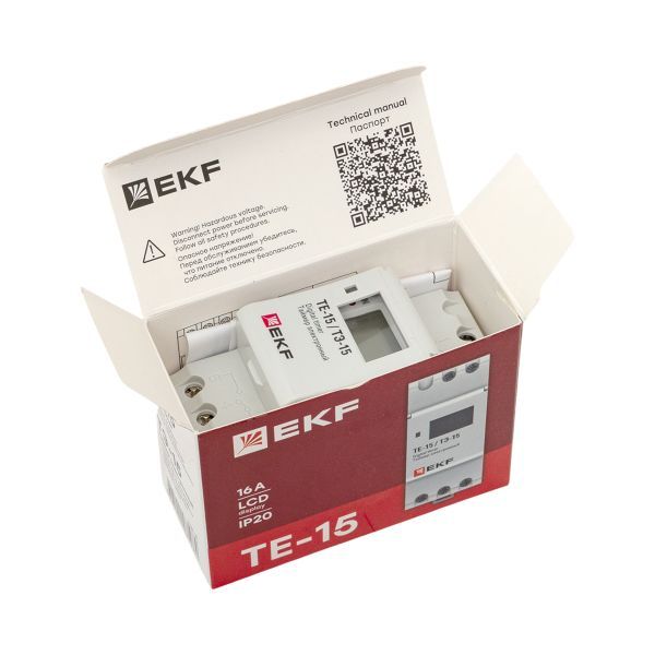 Таймер электронный с ЖК-дисплеем серий ТЭ-15 EKF PROxima представляет собой реле, момент срабатывания которого (включения/отключения) задается установкой необходимого времени суток. Таймер ТЭ-15 EKF PROxima имеет в своем составе часы, что позволяет отслеживать текущее время. Изделие соответствует ГОСТ Р53994.2.7-2010 (МЭК60730-2-7:2008). Преимущества: 1. Установка до 16 программ на включение и отключение 2. Информативный дисплей 3. Часы реального времени 4. Защитная крышка дисплея и кнопок 5. Возможность регулировки предустановки интервала времени 6. Возможность ручного управления реле 7. Встроенное перекидное реле С/О с номинальным током 16А 8. Напряжение питания 230 V АС