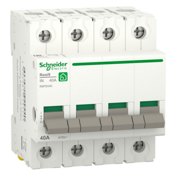 Выключатель нагрузки (модульный рубильник) RESI9 от Schneider Electric предназначен для защиты электрических цепей от перегрузок и коротких замыканий. Этот выключатель имеет четыре полюса, номинальный ток 40А и напряжение 230В. Он занимает 4 модуля на монтажной рейке, что делает его компактным и удобным в установке. Продукт отличается высоким качеством и надежностью, что делает его идеальным выбором для использования в жилых и коммерческих помещениях.