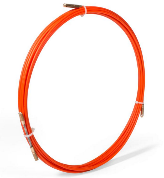 Протяжка имеет диаметр 3,5 мм и длину 10 метров, что позволяет проводить работы на значительном расстоянии без необходимости перестановки инструмента. Благодаря гибкости материала, протяжку легко проникает в труднодоступные места и поворачивается вокруг углов, упрощая процесс натяжки кабелей.