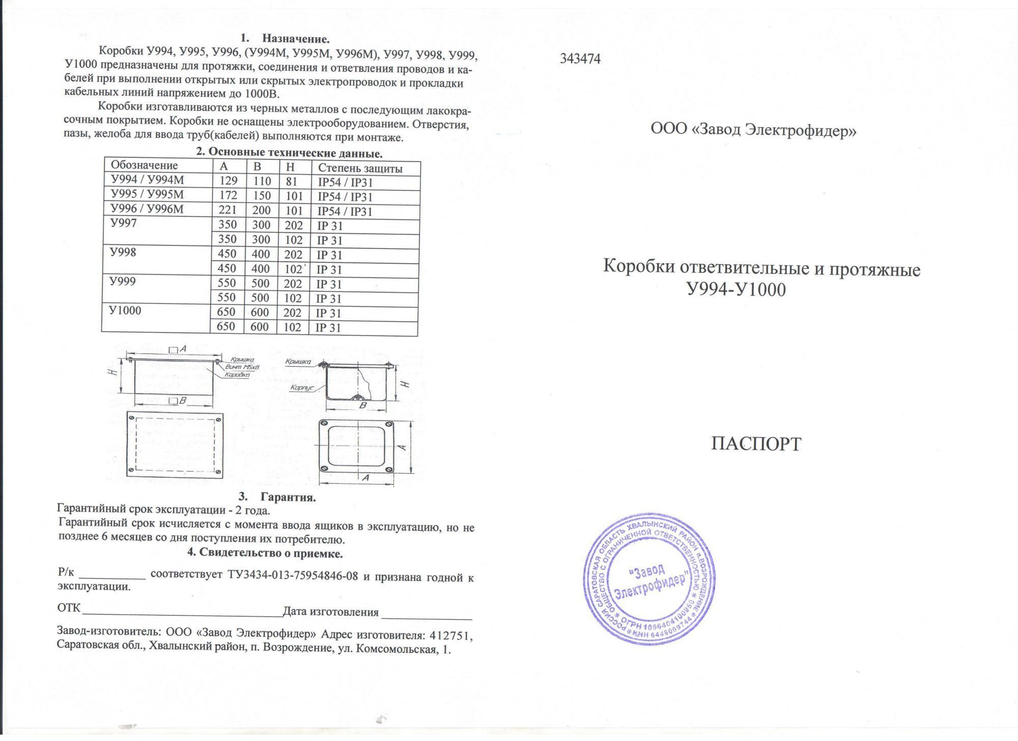 Коробка распределительная У-994 У2 IP54 предназначена для использования в электрических системах различных зданий и сооружений. Она обеспечивает надежную и безопасную фиксацию электрических проводов и соединений.