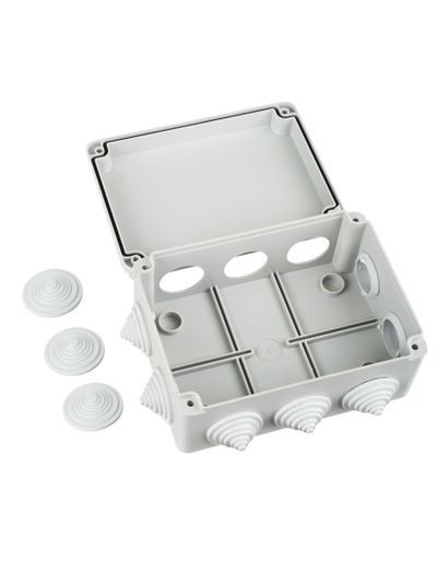 Монтажные коробки для открытого монтажа предназначены для разветвления проводов и кабелей, также для скрытия и дополнительной защиты мест коммутации. Используются как часть системы электрической канализации, состоящей из жестких и гофрированных труб. Коробки с повышенной степенью защиты могут быть использованы на открытом воздухе, а также во влажных и пыльных помещениях. Подходят для прямого монтажа. Материал изготовления: полистирол. Материал коробок является безгалогенным («HF» — halogen-free). Цвет: серый. Степень защиты: IP55. Температура эксплуатации: -25...+40. Количество вводов: 10 - D=25мм. Размер: 150х110х70мм.