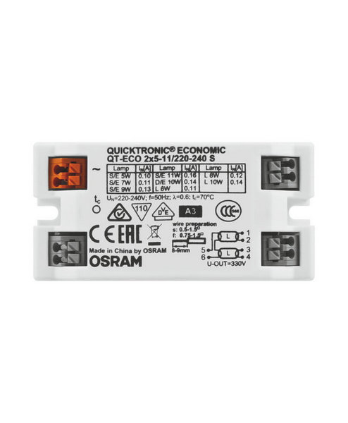 Компактный размер и легкая установка ЭПРА Osram QT-ECO 2x5-11 S делают ее удобной для использования в различных условиях и помещениях. Вы сможете быстро и просто подключить вашу компактную люминесцентную лампу к этому устройству без лишних затрат.