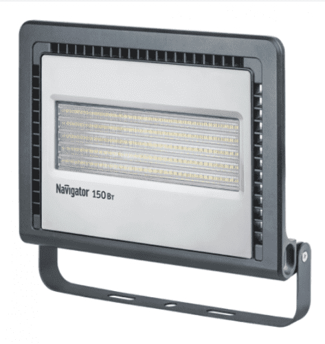 Прожектор светодиодный Navigator NFL-01-150-6.5K-LED 150Вт 6500К 12750Лм IP65 315х268х56 черного цвета - надежное и качественное решение для освещения больших территорий с высокими требованиями к яркости и энергоэффективности.