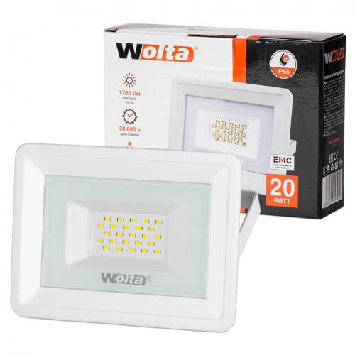 Прожектор светодиодный Wolta WFL-20W/06W белый 5500K 20 Вт SMD IP65 1700 Лм - это мощный и энергоэффективный светодиодный прожектор, предназначенный для освещения больших площадей на улице. Светильник имеет яркий белый свет с цветовой температурой 5500K, что обеспечивает хорошую видимость в темное время суток.Благодаря использованию светодиодов SMD и мощности 20 Вт, этот прожектор обеспечивает яркость до 1700 Лм, что делает его идеальным для освещения улиц, парков, складов и других больших территорий. Прожектор имеет защиту от пыли и влаги по стандарту IP65, что делает его надежным и долговечным в эксплуатации на улице.