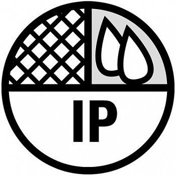 Степень защиты от внешних воздействий обозначается кодом IP и двумя цифрами. Первая цифра (от 0 до 6) обозначает степень защиты от проникновения внутрь электротехнического изделия посторонних предметов и пыли: