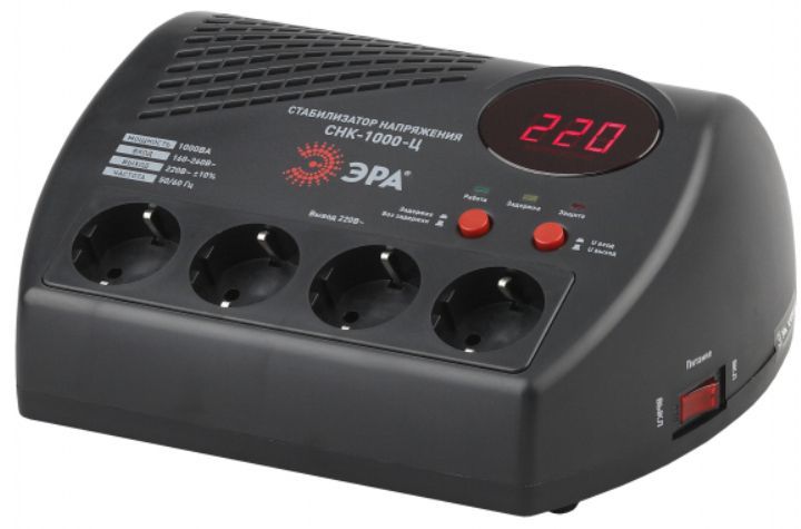 Стабилизатор однофазный 1,0кВа релейный напольный ЭРА СНК-1000 - это компактное и надежное устройство, предназначенное для защиты электроники и бытовой техники от перепадов напряжения в электросети.Этот стабилизатор обеспечивает стабильное питание оборудования, работающего от сети переменного тока, в диапазоне напряжения от 160 до 260 В и выводит его на оптимальные 220 В.