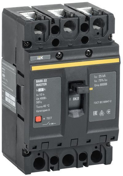 Автоматический выключатель в литом корпусе ВА88 MASTER предназначен для защиты электрических сетей от токов короткого замыкания, токов перегрузки, недопустимых снижений напряжения, а также для проведения тока в нормальном режиме. Автоматические выключатели производятся в 5 типоразмерах, оснащены термомагнитным расцепителем на токи от 16 до 800А и электронным расцепителем на токи от 125 до 800А. Рабочее напряжение 400/690 В. Конструкция автоматического выключателя предусматривает возможность самостоятельной установки дополнительных устройств на объекте заказчика.