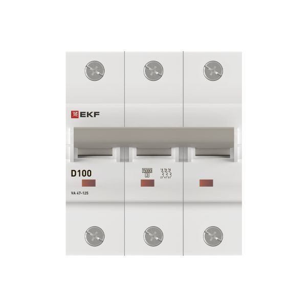 Автоматические выключатели ВА 47-125 EKF PROxima благодаря высокой предельной коммутационной способности 15 кА могут использоваться вместо силовых автоматических выключателей. Выключатели имеют ширину корпуса 1,5 модуля (27 мм), производятся с номинальными токами до 125 А. Для надежного гашения дуги используется двойной разрыв контактов и две дугогасительные камеры. Оптимальная токопроводимость обеспечивается серебросодержащей контактной группой.
