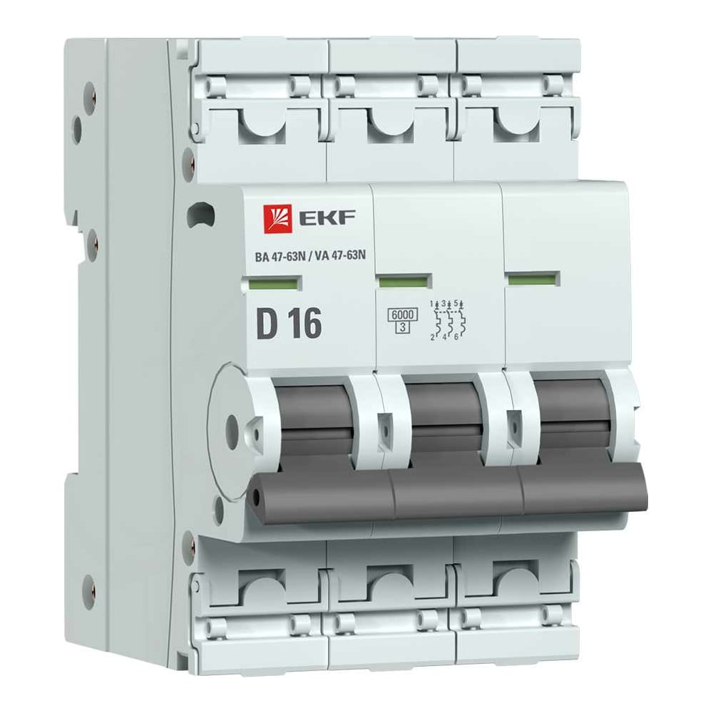 Автоматический выключатель EKF 3P 16А (D) 6кА ВА 47-63N PROxima M636316D - это компактный прибор, позволяющий осуществлять ручное отключение и включение управляемых им участков цепи и обеспечивающий защиту элетросети от короткого замыкания и перегрузки. Устанавливается в настенном щите или напольном шкафу на DIN-рейку. Конструкция модели автоматического выключателя дает возможность подключать дополнительные контролирующие, управляющие и обслуживающие устройства.