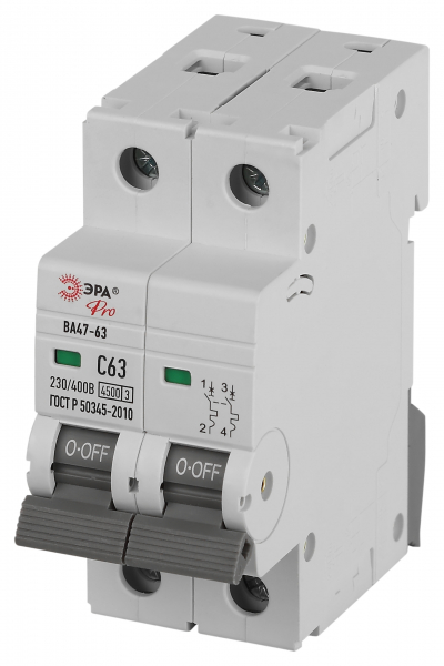 В нашем магазине «Главэлектрика» в Нижнем Новгороде, вы можете приобрести товар: «Автоматический выключатель ЭРА PRO VA63-2P63C4.5 ВА47-63 2P 63А кривая C 4,5кА (кратно 1)» с доставкой по г. Нижний Новгород.
