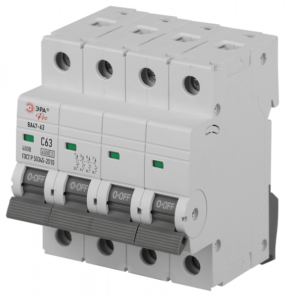 В нашем магазине «Главэлектрика» в Нижнем Новгороде, вы можете приобрести товар: «Автоматический выключатель ЭРА PRO VA63-4P63C4.5 ВА47-63 4P 63А кривая C 4,5кА (кратно 1)» с доставкой по г. Нижний Новгород.
