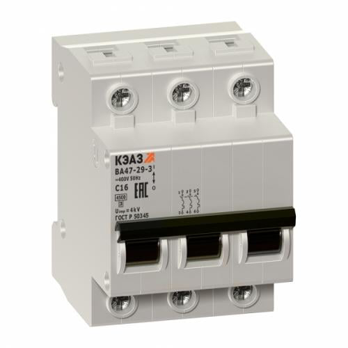 КЭАЗ ВА47-29 3P 10А (D) 4.5кА, 253127 имеет дополнительную функцию защиты от перекоса напряжения, что позволяет предотвратить повреждение электрооборудования при нестабильном или неправильном питании.