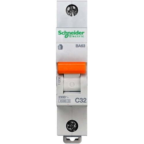 Выключатель Schneider Electric Домовой 1P 32А (C) 4.5кА, 11206 применяется в бытовых и коммерческих электрических системах для обеспечения безопасности и предотвращения повреждения оборудования и возгорания.