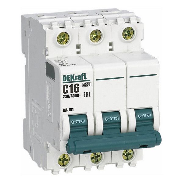 Общая функция автоматического выключателя DEKraft ВА-101 3P 13А (C) 4.5кА, 11224DEK - это обеспечение электрической безопасности и защиты электрических сетей от возможных повреждений, вызванных перегрузками и короткими замыканиями.